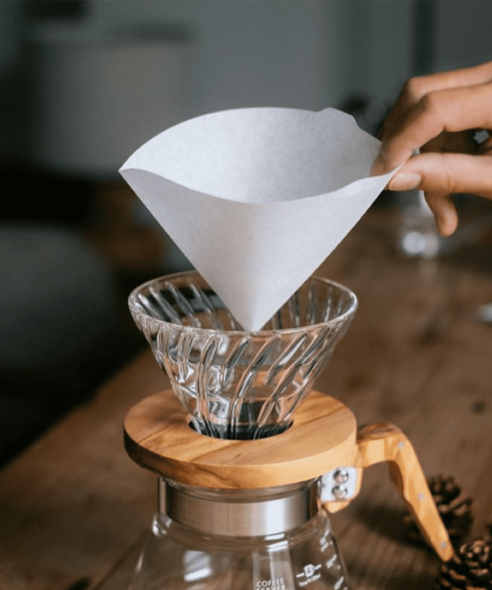 Kağıdı V60'ınıza koyun ve sıcak suyla iyice durulayın.