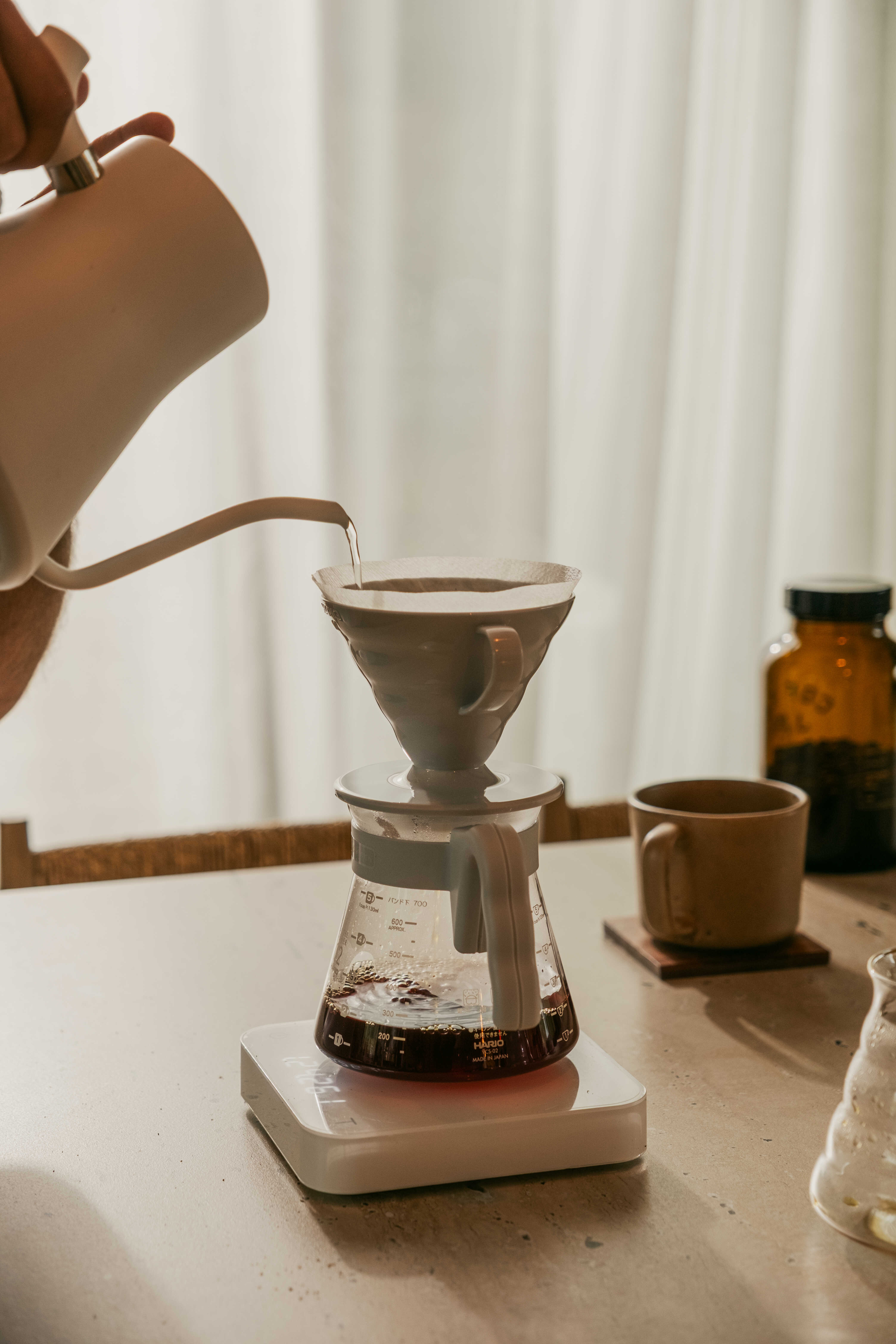 Öğütülmüş kahve filtreye eklendikten sonra dripper hafifçe sallanarak kahve yatağının düz bir yüzey oluşturması sağlanır. Hario V60 Kettle ile sıcak su önce az miktarda, dairesel bir hareketle ve kahveyi tamamen ıslatacak şekilde dökülür. Kısa bir bekleme süresinin ardından su; merkezin içinden dışa, dıştan tekrar merkeze doğru yavaş ve kontrollü bir akış ile eklenmeye devam edilir. Bu sırada suyun filtre kâğıdının duvarlarına temas etmemesine dikkat edilmelidir.